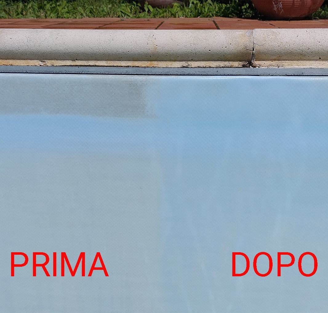 Assolutamente no. Il rivestimento in PVC (liner) è delicato. L'uso di acidi troppo aggressivi o non specifici può scolorire il materiale o renderlo poroso. Utilizziamo solo detergenti acidi tamponati, studiati per sciogliere le incrostazioni romane senza intaccare la flessibilità e il colore del PVC.